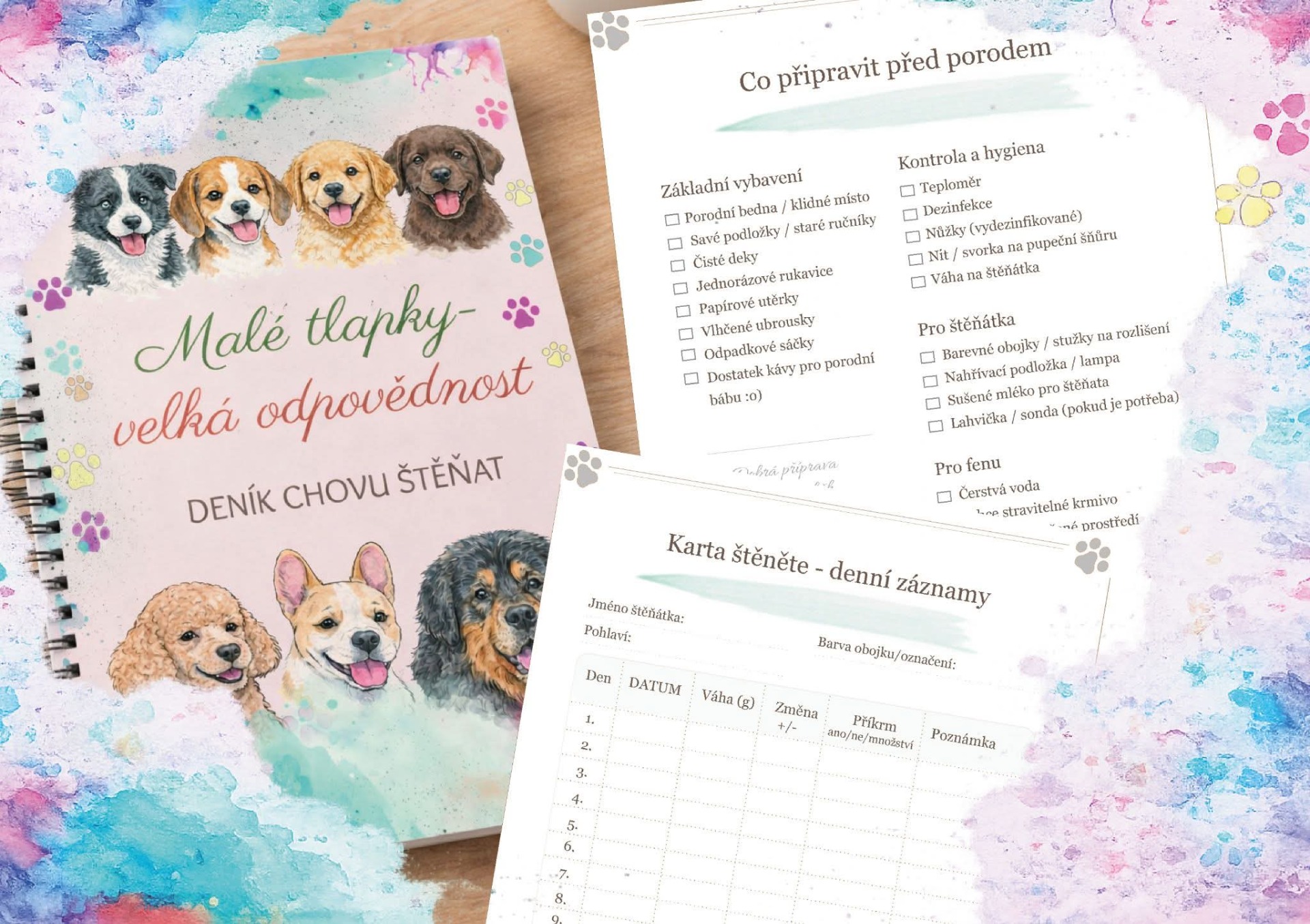 Deníky chovu štěňat, plánovače výstav,karty štěňat pro majitele